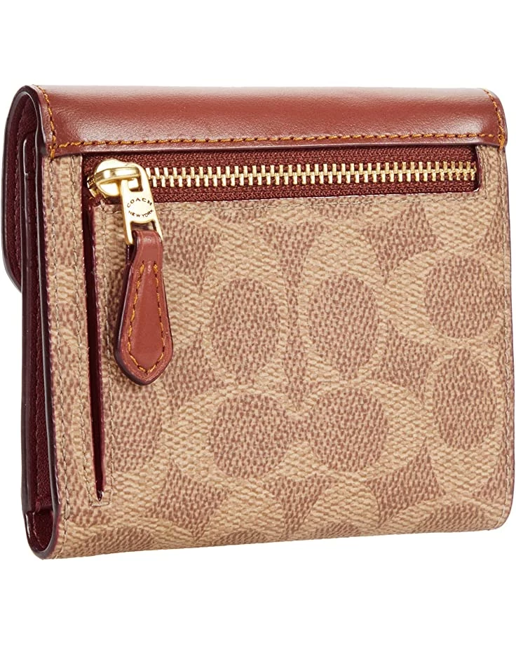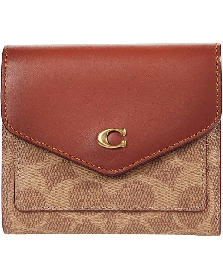 - The COACH™ Color-Block Coated Canvas Signature Wyn Small Wallet opens up with a beautiful envelope design featuring a signature metal emblem. A spacious bill compartment and room for several cards inside, with a self-folding zippered coin pocket at the back.